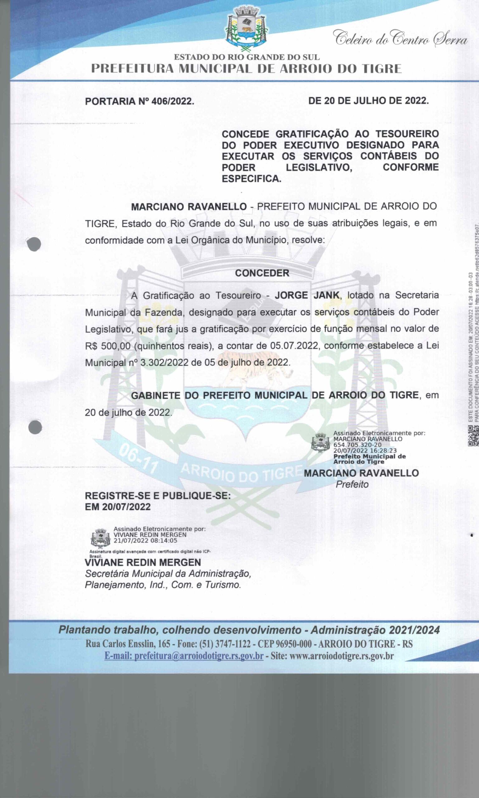 CONCEDE GRATIFICAÇÃO AO TESOUREIRO DO PODER EXECUTIVO DESIGNADO PARA EXECUTAR OS SERVIÇOS CONTÁBEIS DO PODER LEGISLATIVO, CONFORME ESPECIFICA.