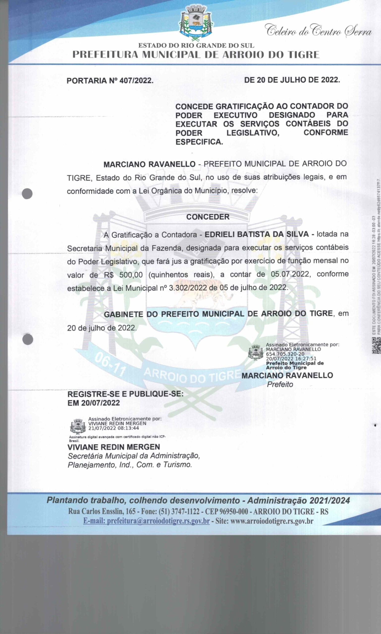 CONCEDE GRATIFICAÇÃO AO CONTADOR DO PODER EXECUTIVO DESIGNADO PARA EXECUTAR OS SERVIÇOS CONTÁBEIS DO PODER LEGISLATIVO, CONFORME ESPECIFICA.
