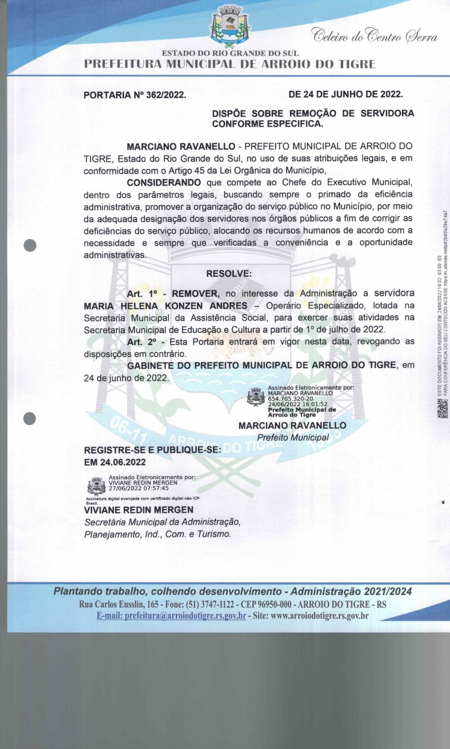 DISPÕE SOBRE REMOÇÃO DE SERVIDORA CONFORME ESPECIFICA.
