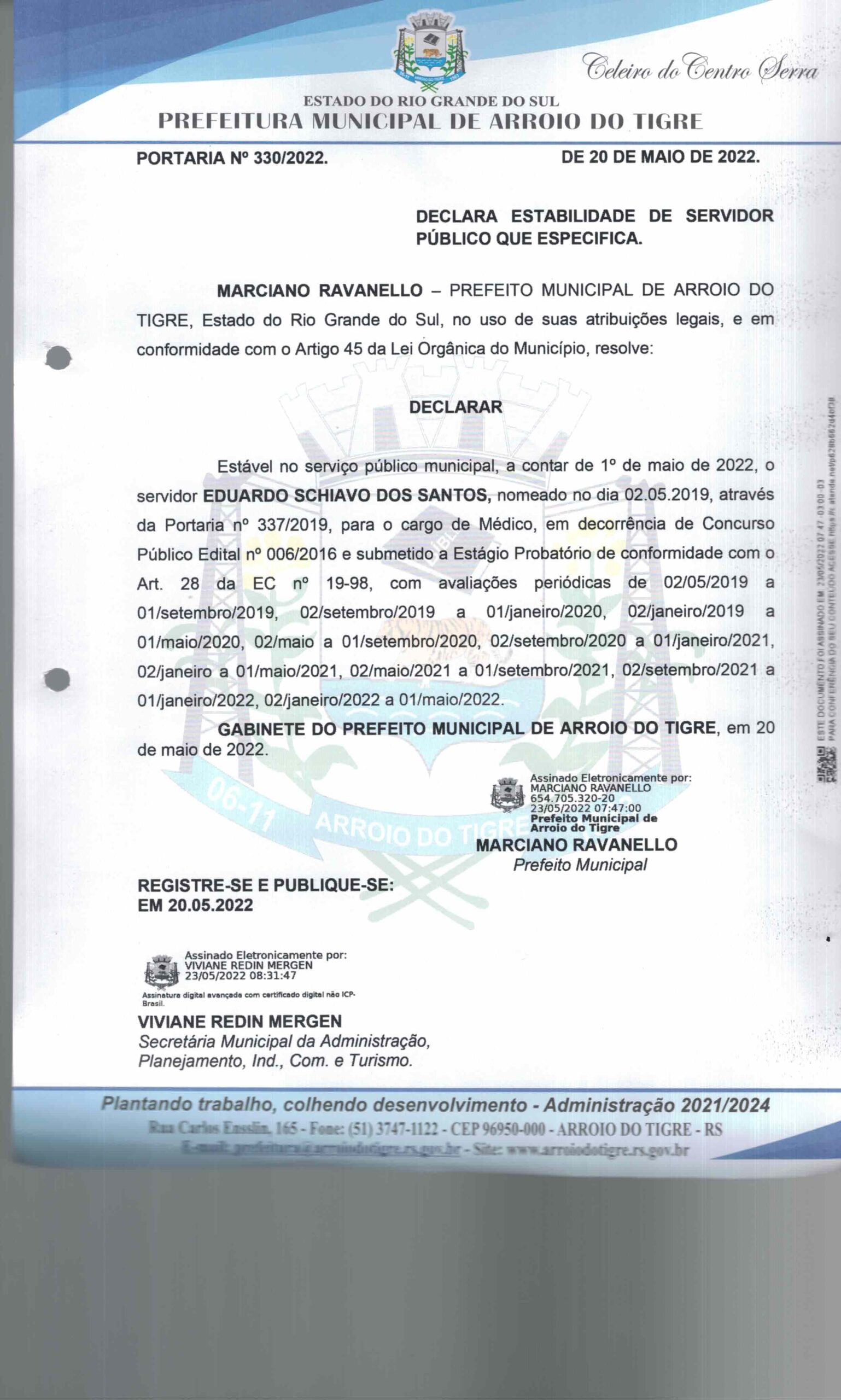 DECLARA ESTABILIDADE DE SERVIDOR PÚBLICO QUE ESPECIFICA.