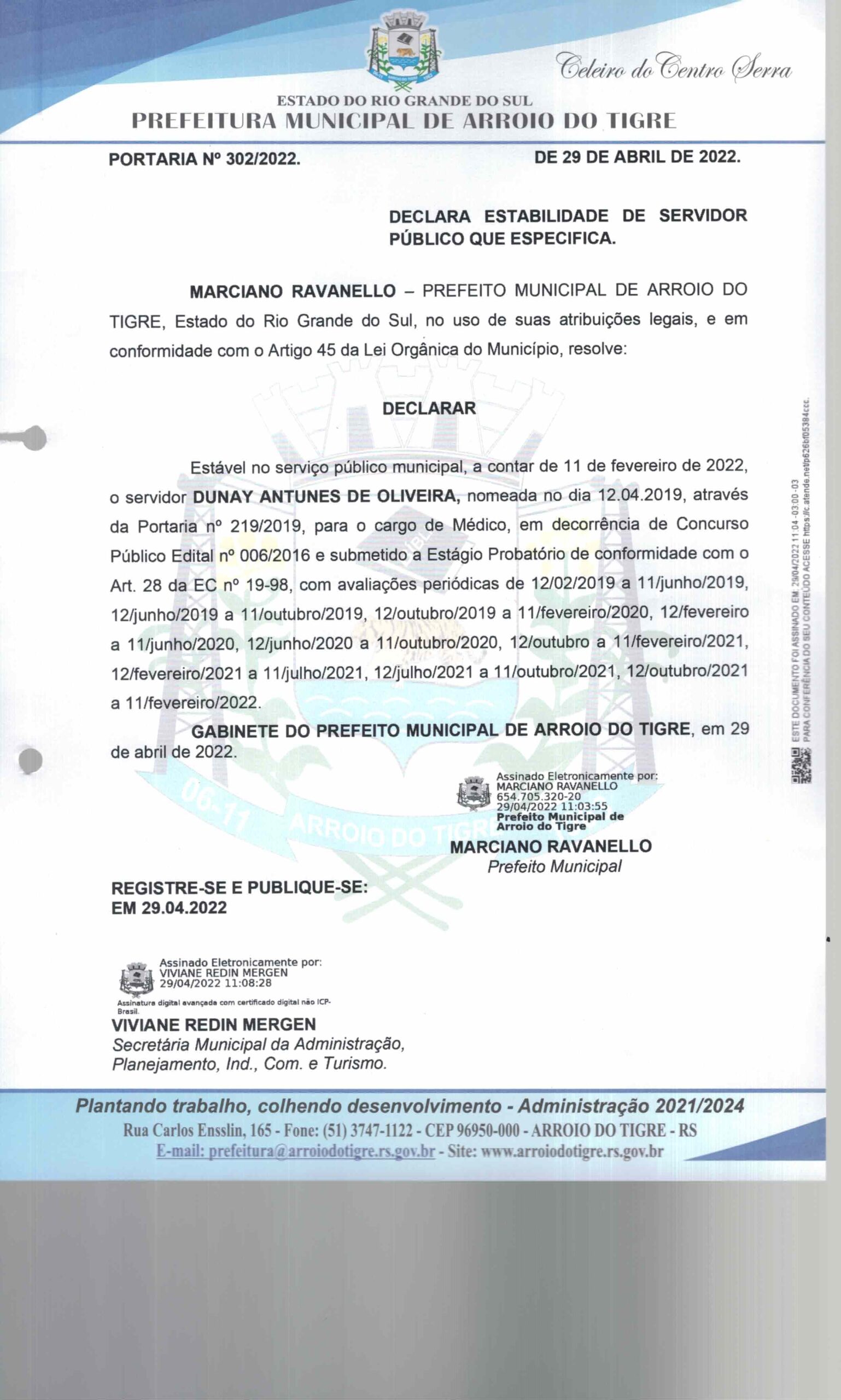 DECLARA ESTABILIDADE DE SERVIDOR PÚBLICO QUE ESPECIFICA.