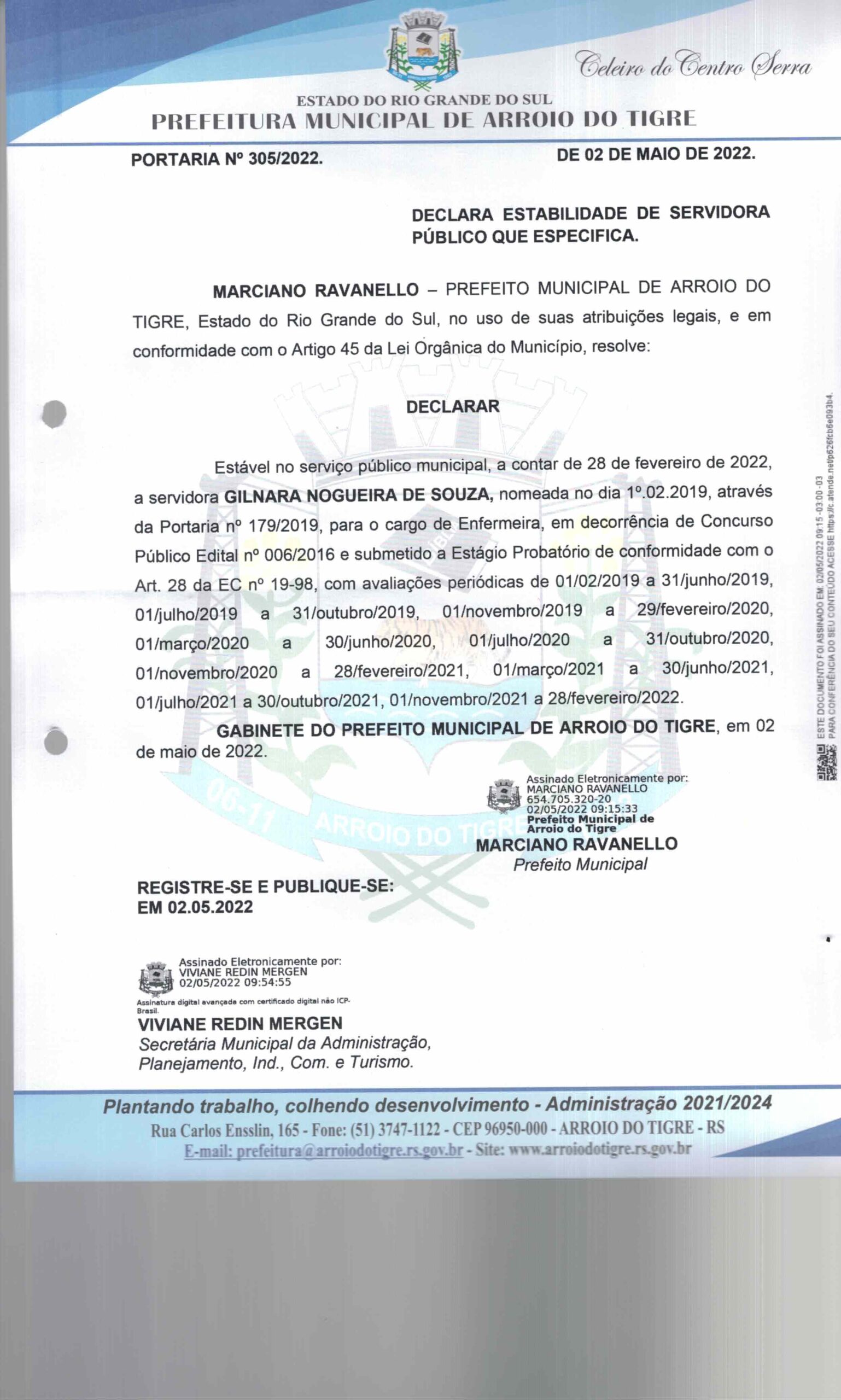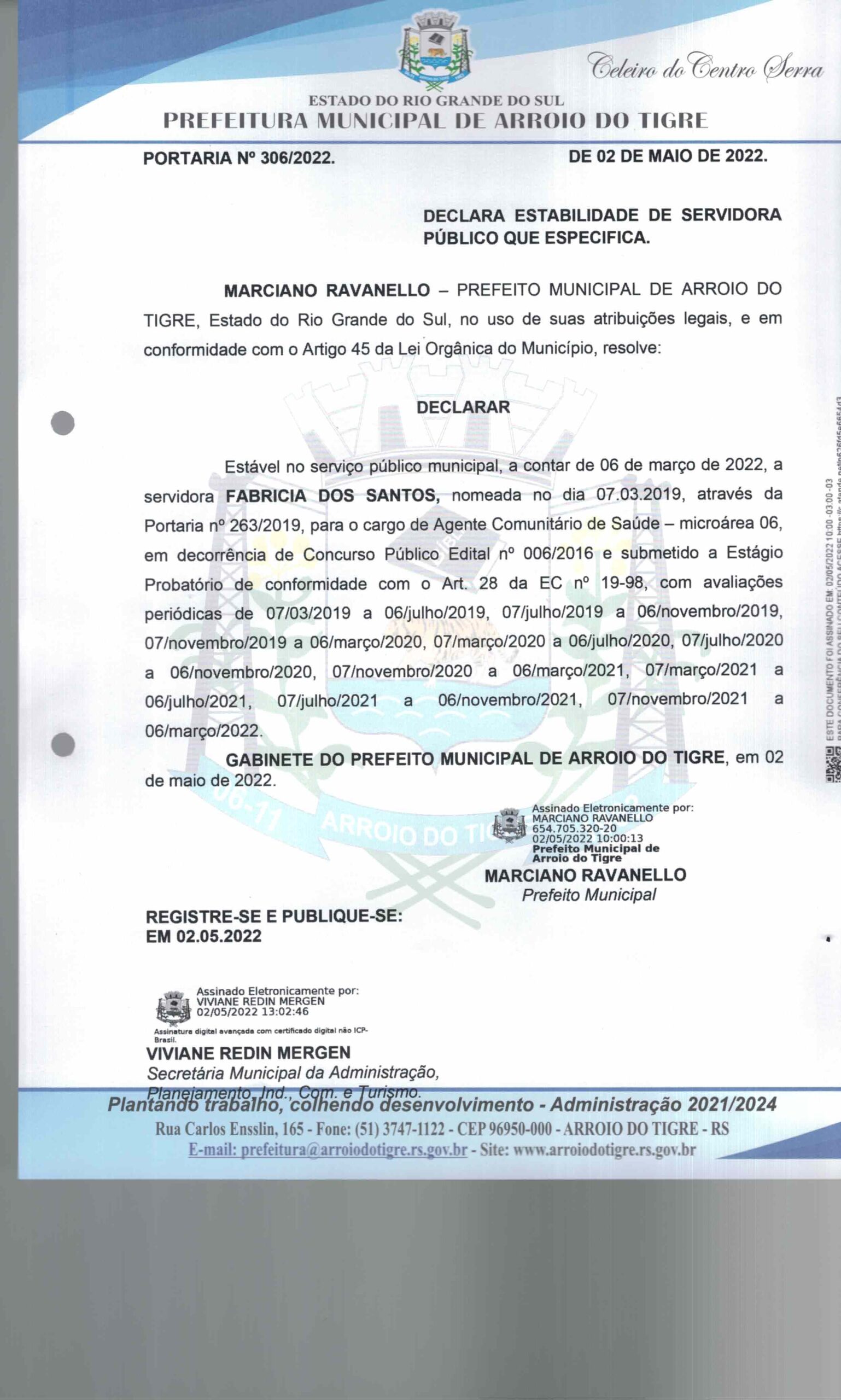 DECLARA ESTABILIDADE DE SERVIDORA PÚBLICO QUE ESPECIFICA.