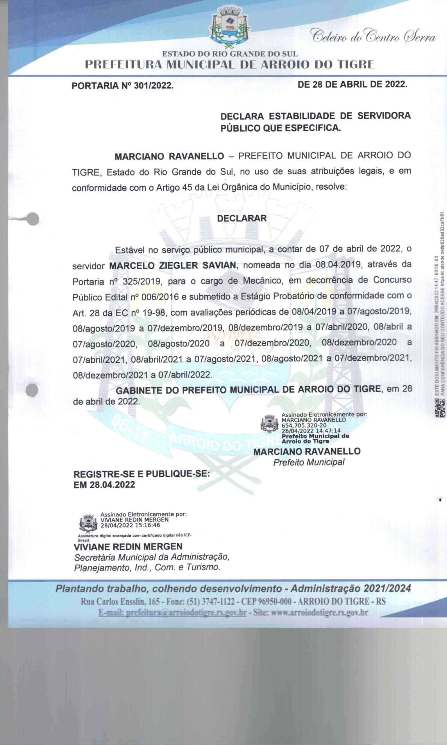 DECLARA ESTABILIDADE DE SERVIDORA PÚBLICO QUE ESPECIFICA.