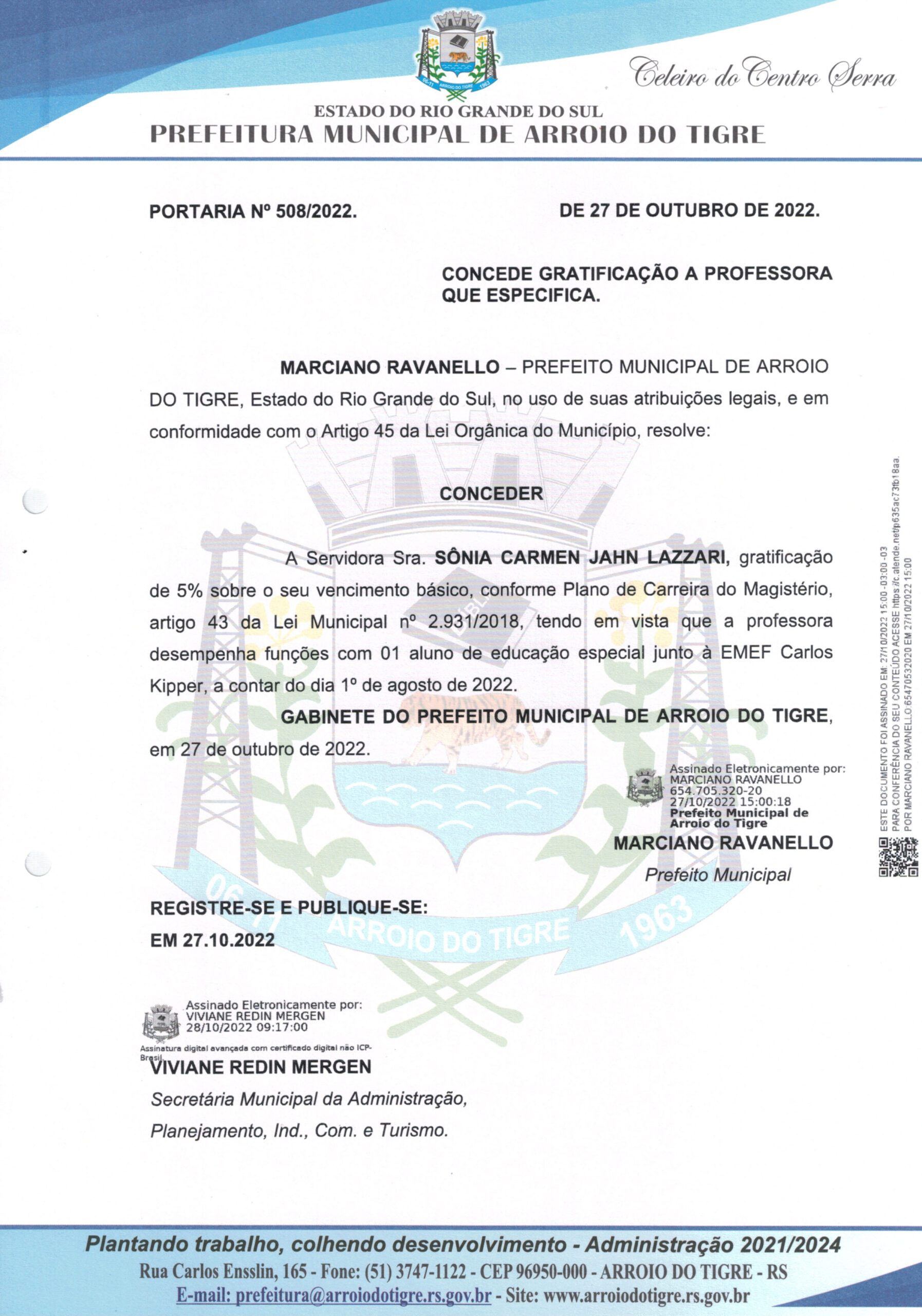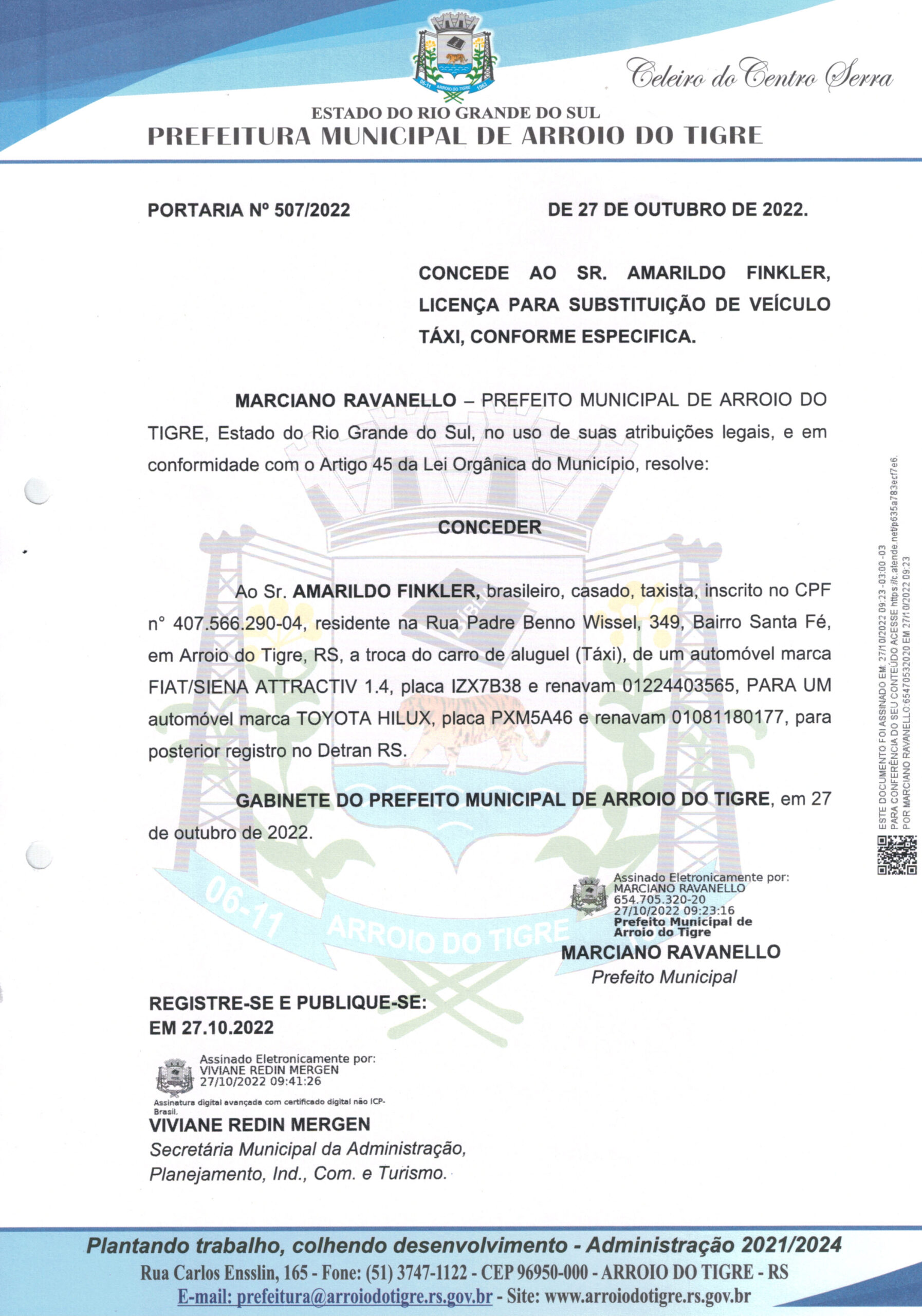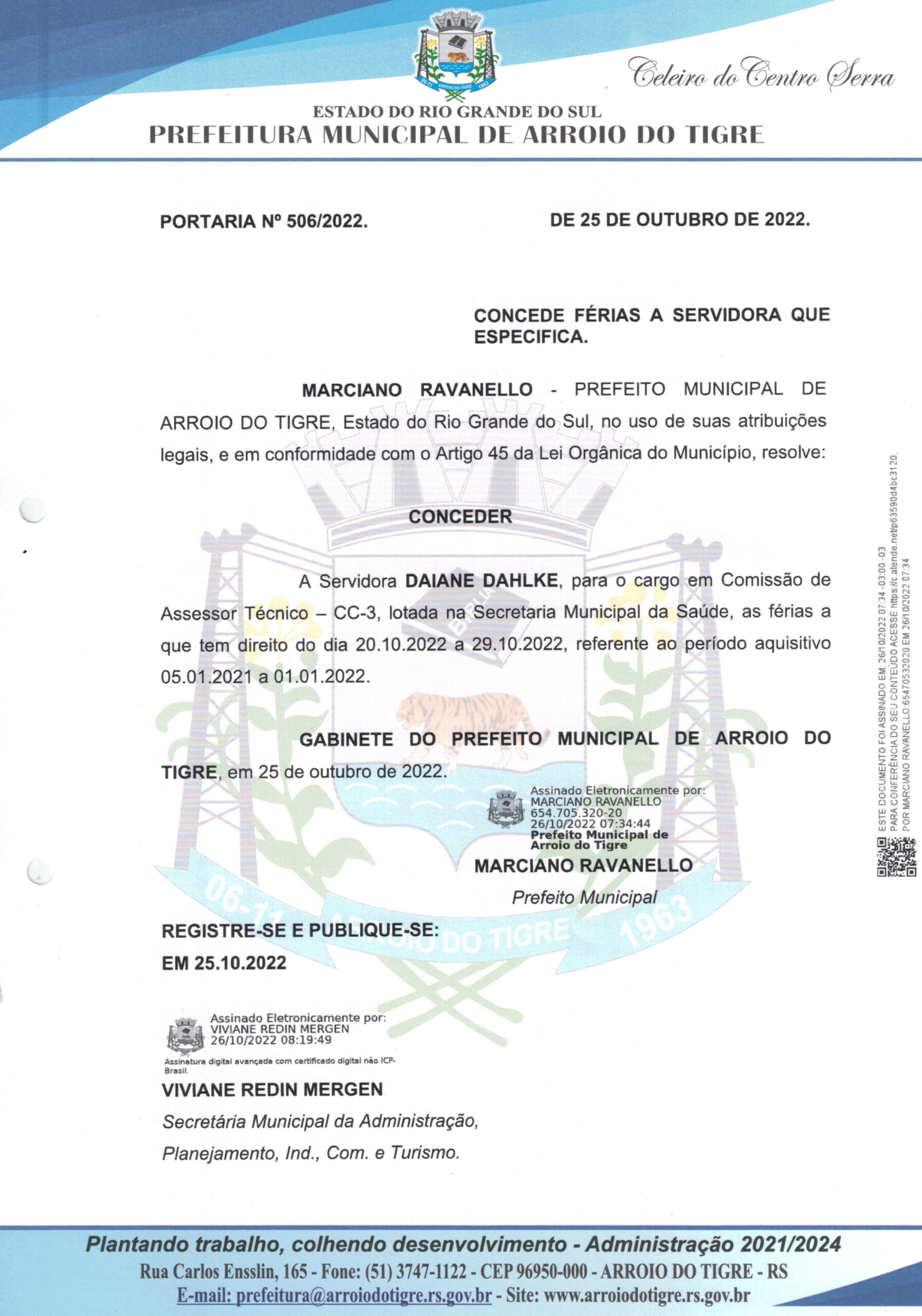 DESIGNA SERVIDOR PARA ATUAR COMO PREPOSTO DO MUNICÍPIO DE ARROIO DO TIGRE, CONFORME ESPECIFICA.